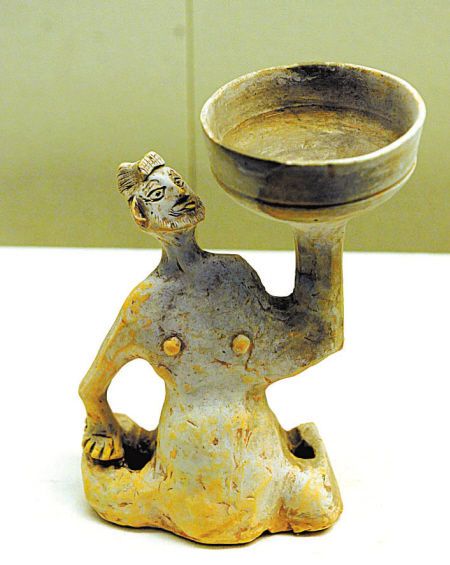 陶胡人俑座燈