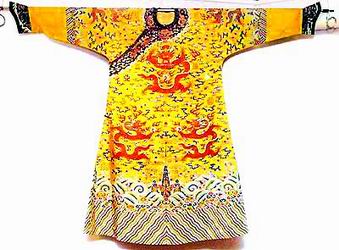 龍袍是中國(guó)古代皇帝參加勞師、受俘、賜宴、祝壽等一般慶典活動(dòng)時(shí)所穿的禮服,因袍上繡紋以龍為主,故此得名。龍袍專供皇帝穿著,其他官員只有得到皇帝親賜才能穿著,但在穿著時(shí)必須要“挑去一爪”,以示區(qū)別。